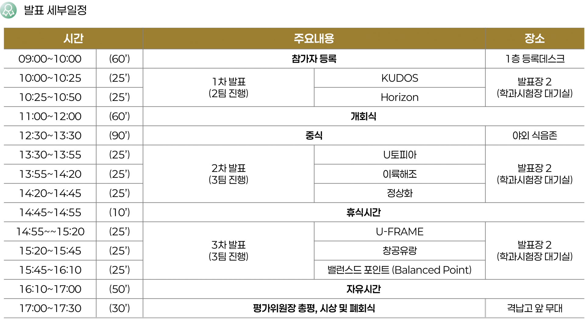 상기 내용 참고하시어 대회 준비에 차질이 없으시기 바랍니다.