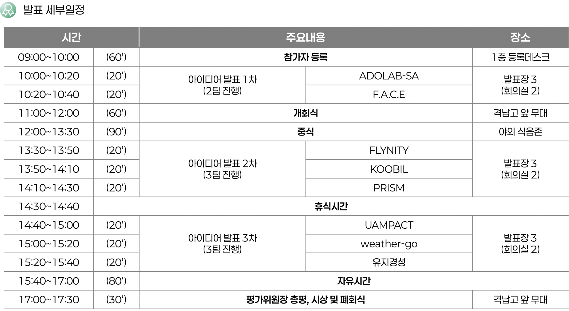 오는 10월 29일(수)에 진행되는 사회적수용성부문 발표 순서 및 세부 일정을 안내드립니다.