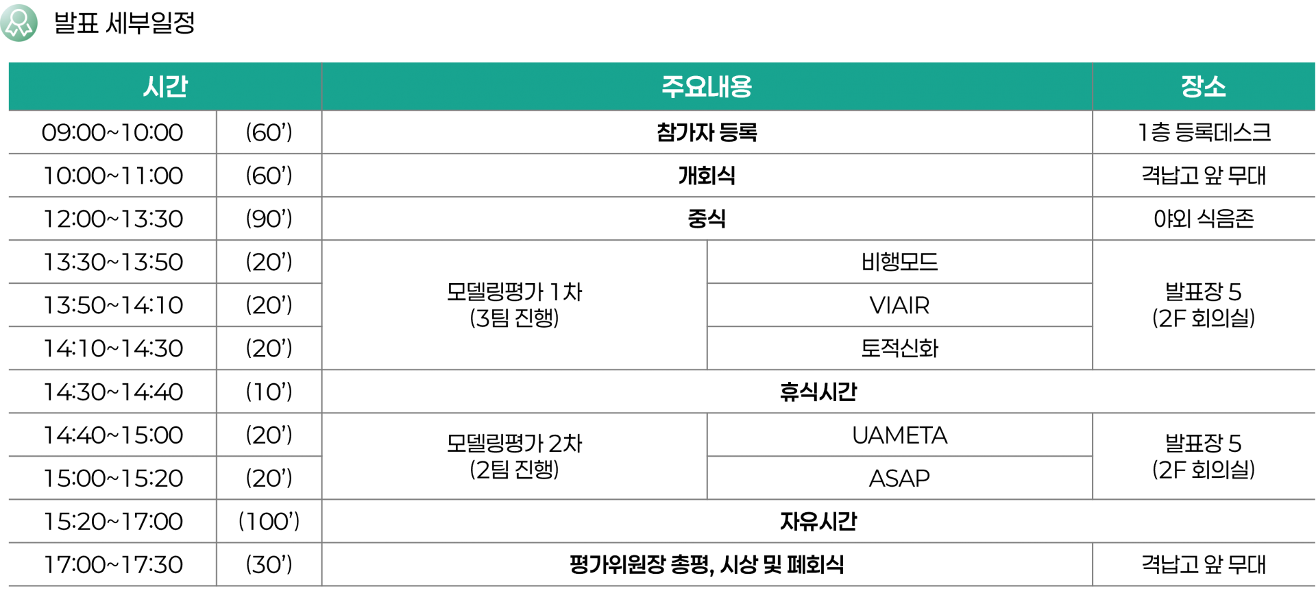 오는 10월 29일(수)에 진행되는 공간정보부문 발표 순서 및 세부 일정을 안내드립니다.